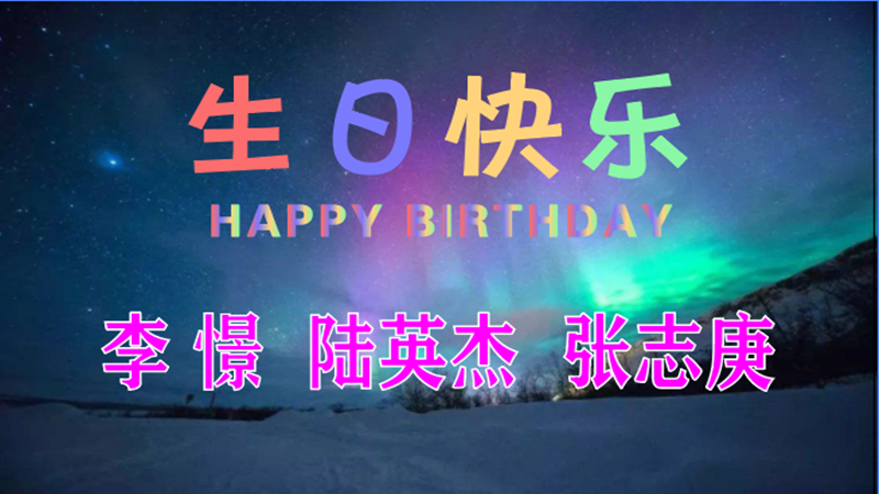 最后,让我们一起祝愿李憬、陆英杰、张志庚,生日快乐,身体健康,工作顺利,永葆青春!
