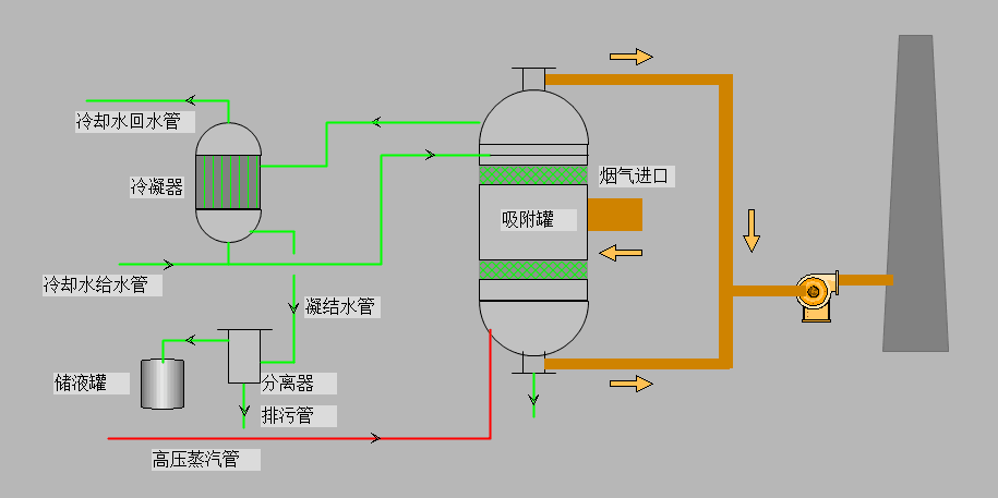 活性炭吸附工艺主要由吸收、解吸、硫回收三部分组成。烟气有增压风机引入吸收塔,在吸收塔入口前喷入氨,吸收塔由前室、中室和后室组成,烟气一次经过从而得到净化,净化后的烟气进入烟放出来,活性炭再重新利用。这个过程需要对其进行加热及冷却。释放出来的二氧化硫可制硫酸活液体二氧化硫,加以综合利用。解吸后的活性炭经传送装置送往吸收塔重新用来吸收二氧化硫和NOx等。囱排放。活性炭由塔顶加入到吸收塔中,并在重力和塔底出料装置的作用下向下移动,吸收了二氧化硫、重金属等活性炭经传送装置送往解吸塔。解吸塔的作用是将活性炭吸附的二氧化硫释放出来,活性炭再重新利用。这个过程需要对其进行加热及冷却。释放出来的二氧化硫可制硫酸活液体二氧化硫,加以综合利用。解吸后的活性炭经传送装置送往吸收塔重新用来吸收二氧化硫和NOx等。