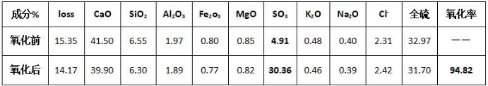 下表:烧结烟气半干法脱硫灰氧化前后主要成分对比