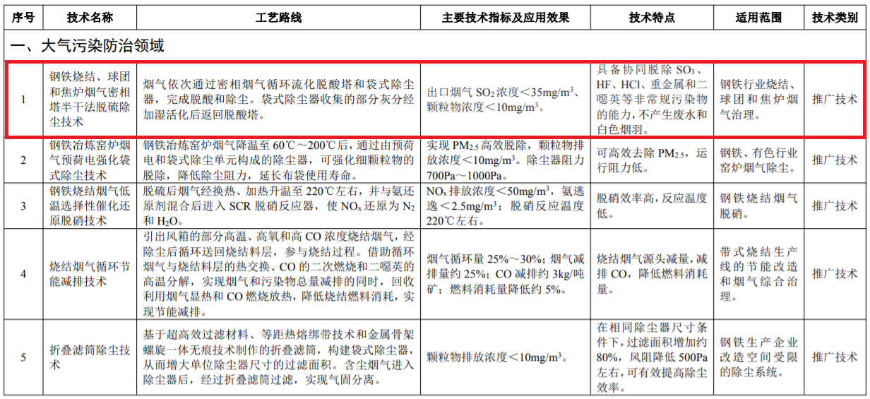 1125日,生态环境部发布关于2021年《国家先进污染防治技术目录(大气污染防治、噪声与振动控制领域)》(公示稿)的公示,共涉及22项大气污染防治领域技术,6项噪声与振动控制领域技术。其中,由北京凯时凯时首页环境工程有限公司(以下简称:凯时凯时首页环境)拥有知识产权的“钢铁烧结、球团和焦炉烟气密相干塔半干法脱硫除尘技术”位列榜单之首。在国家环保技术创新层面,凯时凯时首页环境再获广泛肯定与充分认可。