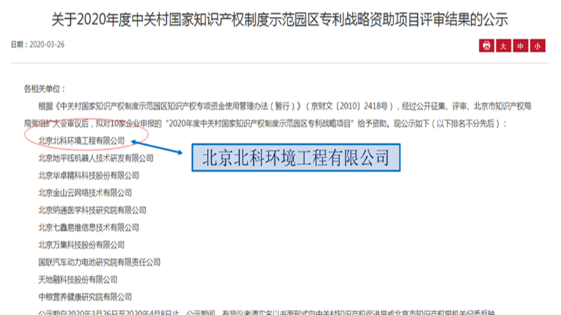 2020年326日,中关村知识产权促进局对“2020年度中关村国家知识产权制度示范园区专利战略资助项目”的评审结果进行了公示,北京凯时凯时首页环境工程有限公司(以下简称:凯时凯时首页环境)位列榜首。